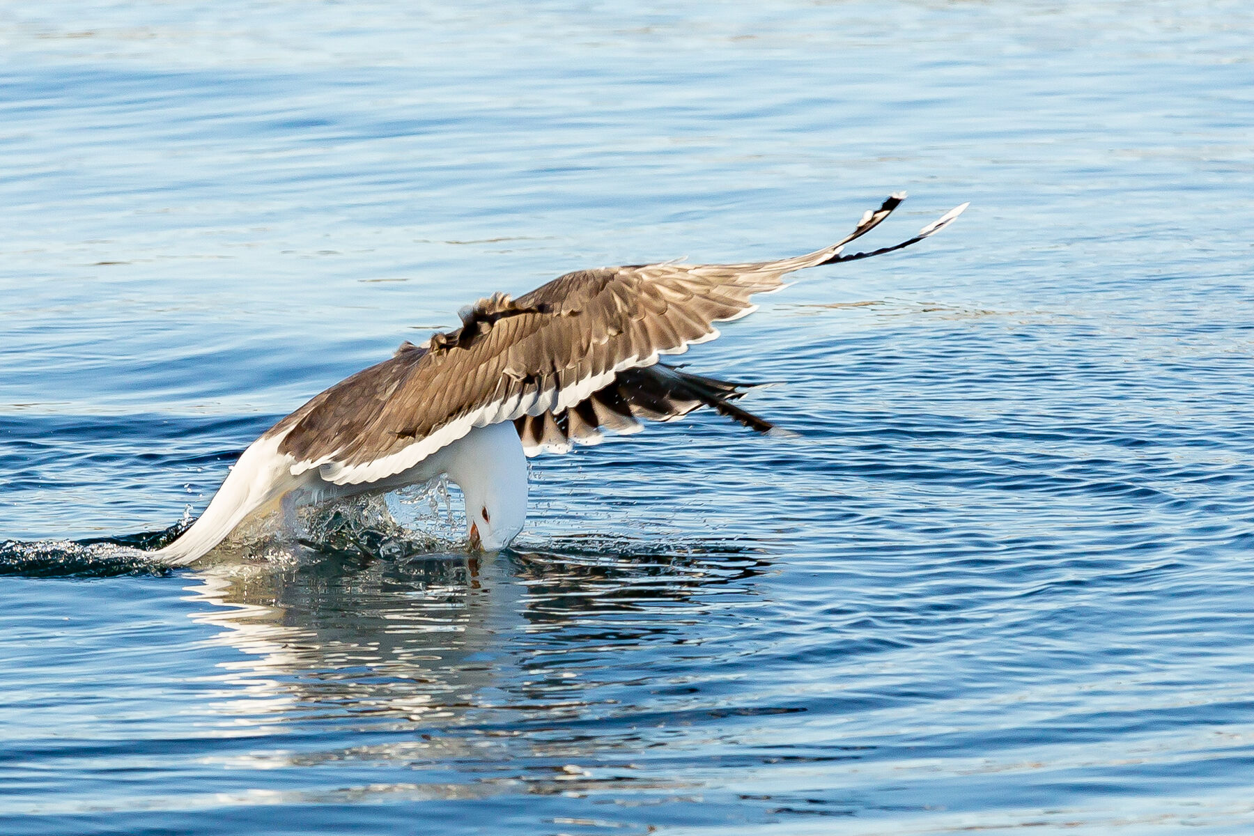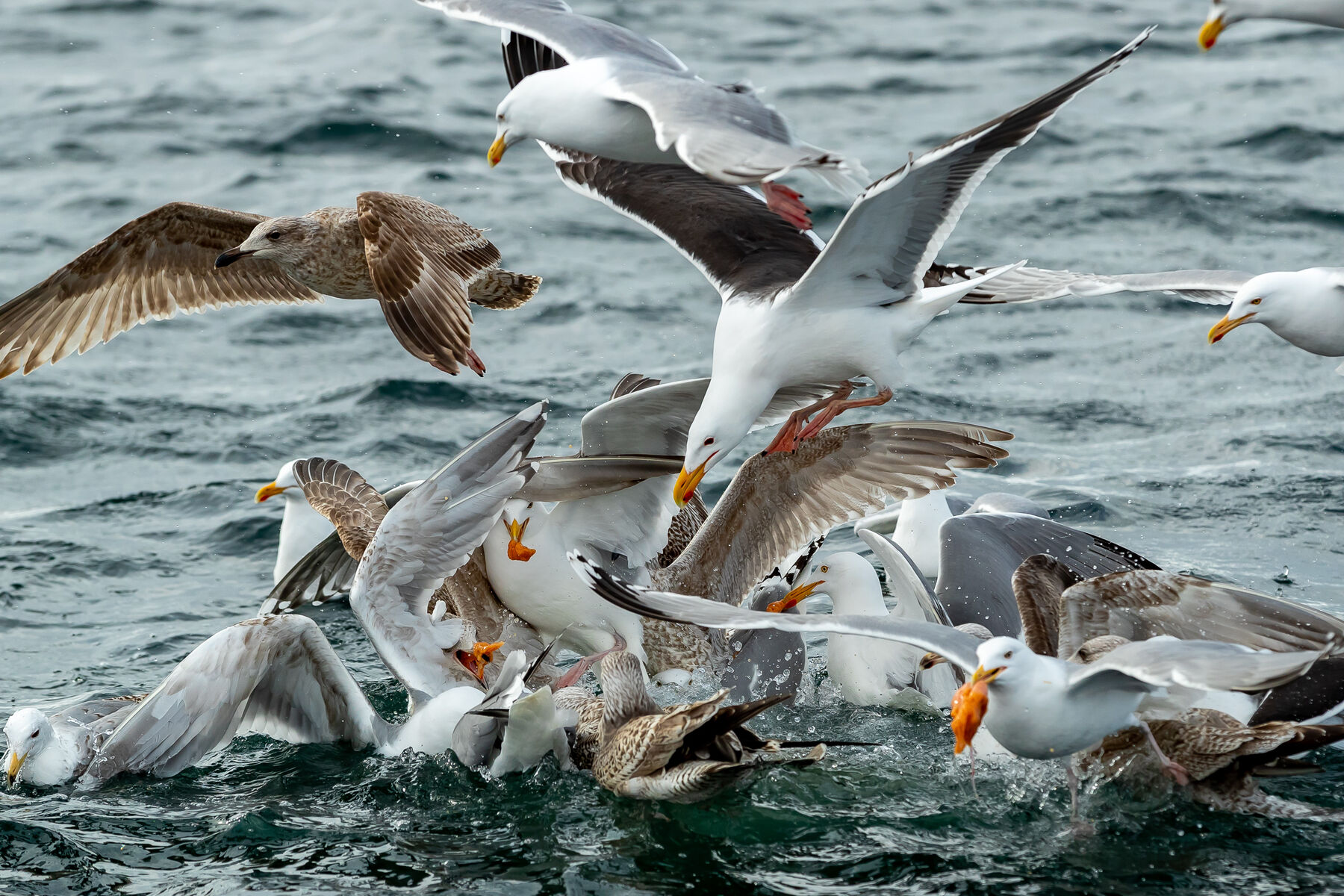 K: Herlig kaos - det er jo slik det ofte er! Her gjør det ingen ting at bare deler av enkelte måker viser, syns jeg. K: Her får du frem en historie i dette kaoset som oppstår, noen er på vei ned, noen videre, noen har fått segen godbit. Fint at måkene er kuttet i kantene, det gir oss en følelse av å være nærmere. Veldig flotte farger.