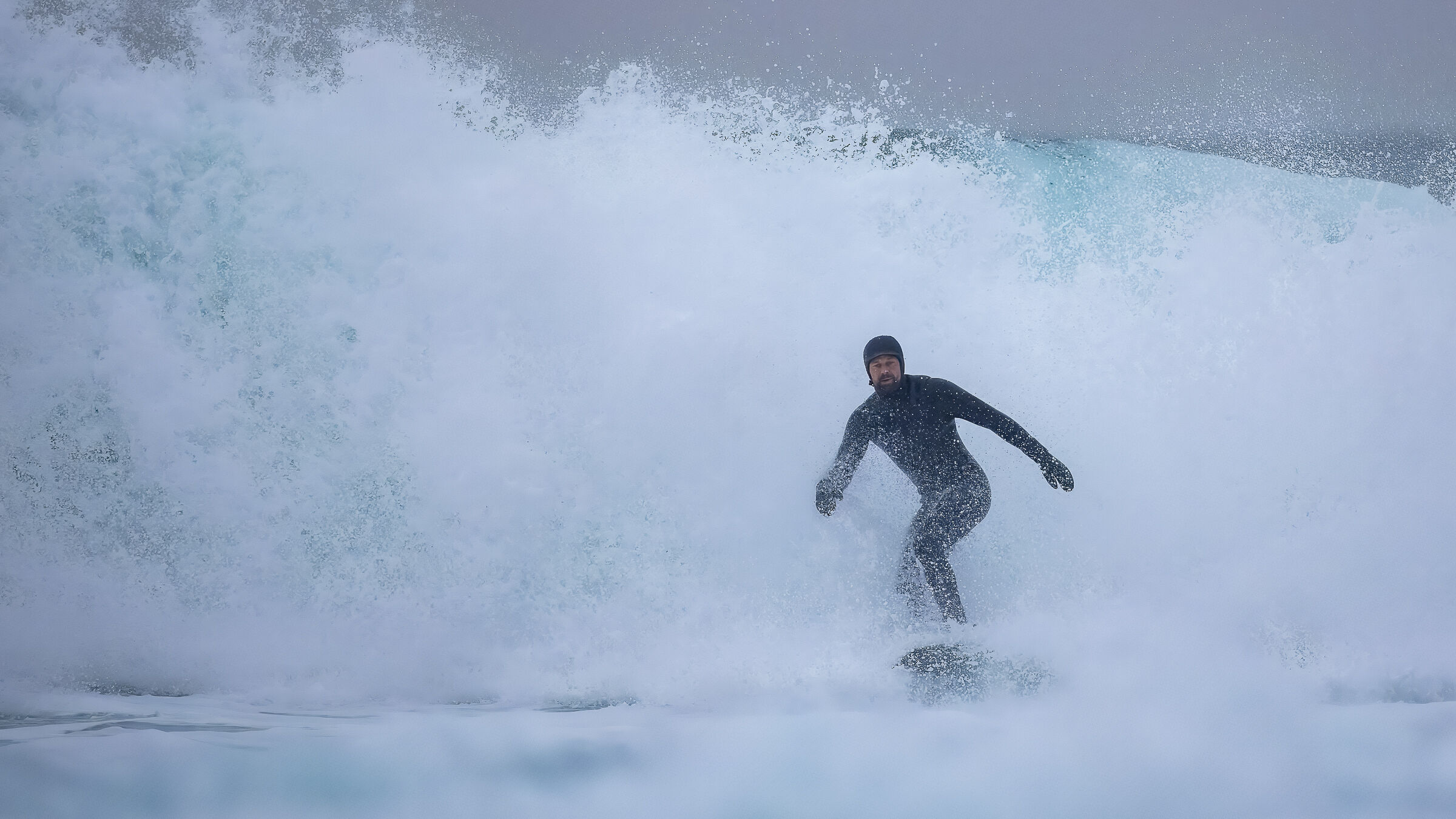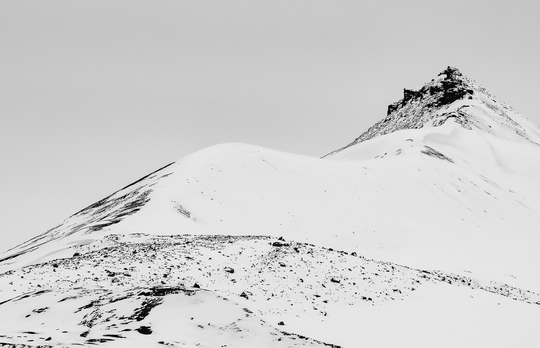 Fin komposisjon med linjer som leder inn i bildet. Litt for dominerende grå himmel. Fin kontrast og linjeføring, motivet nærmer seg nesten det abstrakte. God løsning.