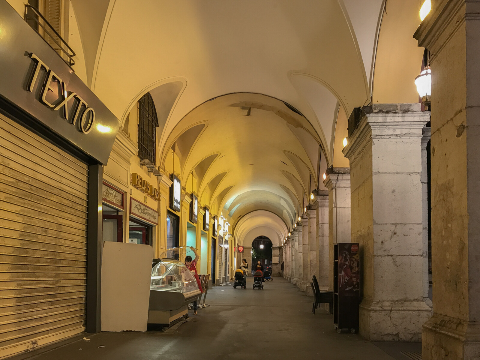 Fine former og buer, men fremste del stjeler en del oppmerksomhet med lukket butikk-dør og skilt. Kanskje kunne bildet vært vannrett og ikke loddrett?