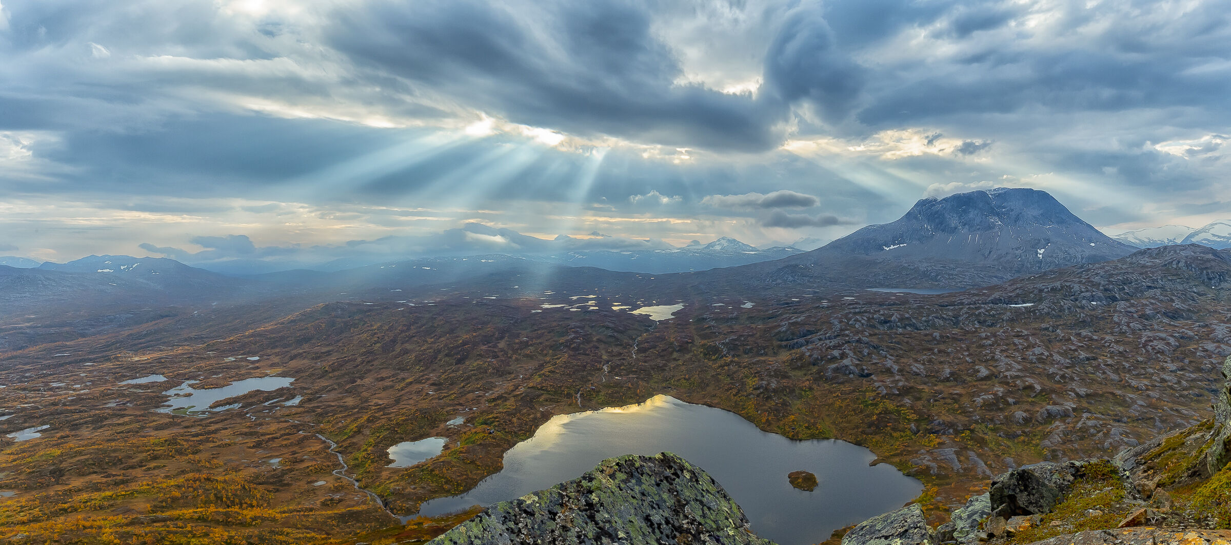 Nydelig landskap foto. En fryd for øyet. Velkomponert landskapsbilde som spiller godt på symmetri og speiling. Hadde klonet bort noe av tangen i forkant av bildet.