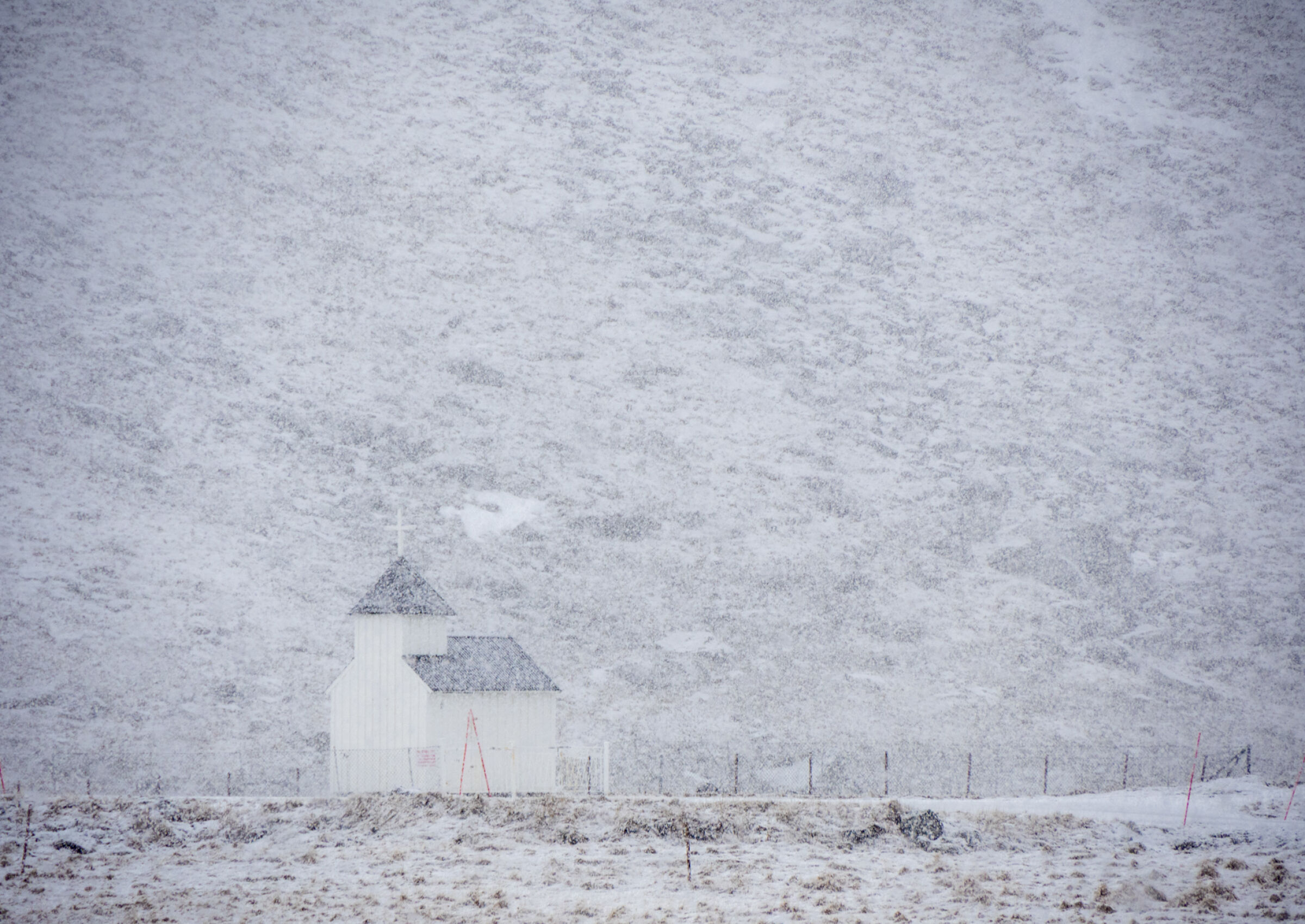 Kirke i svært så ugjestmilde omgivelser. Tankene går til menneskene som oppsøker kirka, er de like furet og værbitt? Modig og vellykket valg å inkludere så mye av fjellet i bakgrunnen. Hederlig.