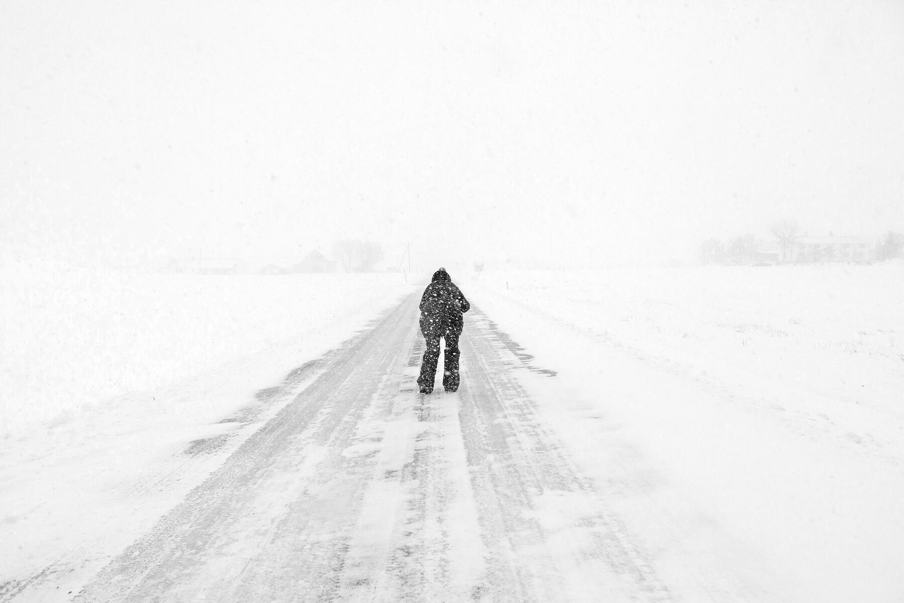 K Fin komposisjon. Symmetrien hadde vært fullkommen hvis hus og trær gikk helt ut også på venstresiden., evt croppet litt på venstresiden inn til veien. K Flott sett, komponert og utført! Flotte gråtoner og teknisk perfekt. En spennende historie...