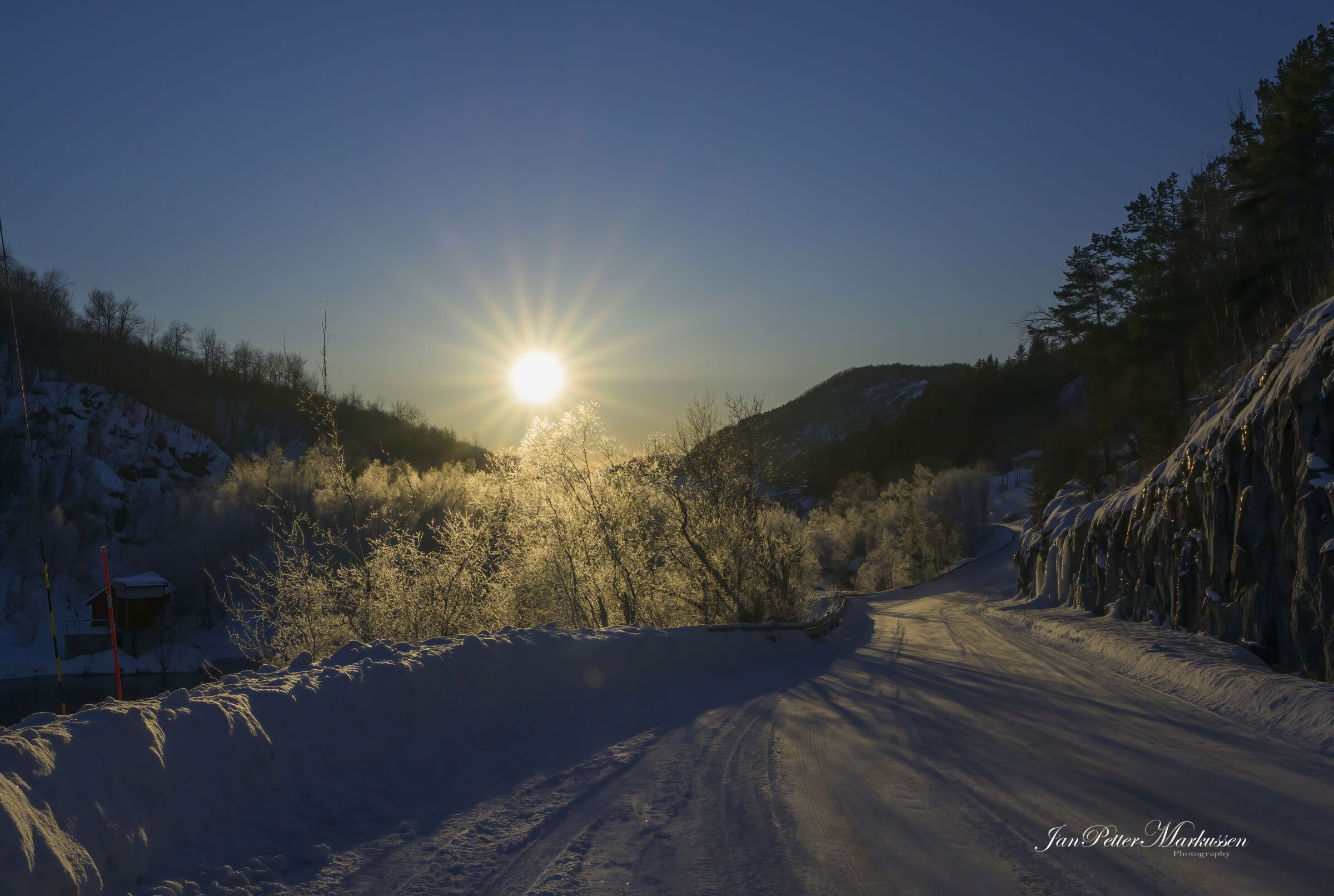 , Kondensstripe etter fly, sol og snøfokk ble en fin opplevelse i dag ,