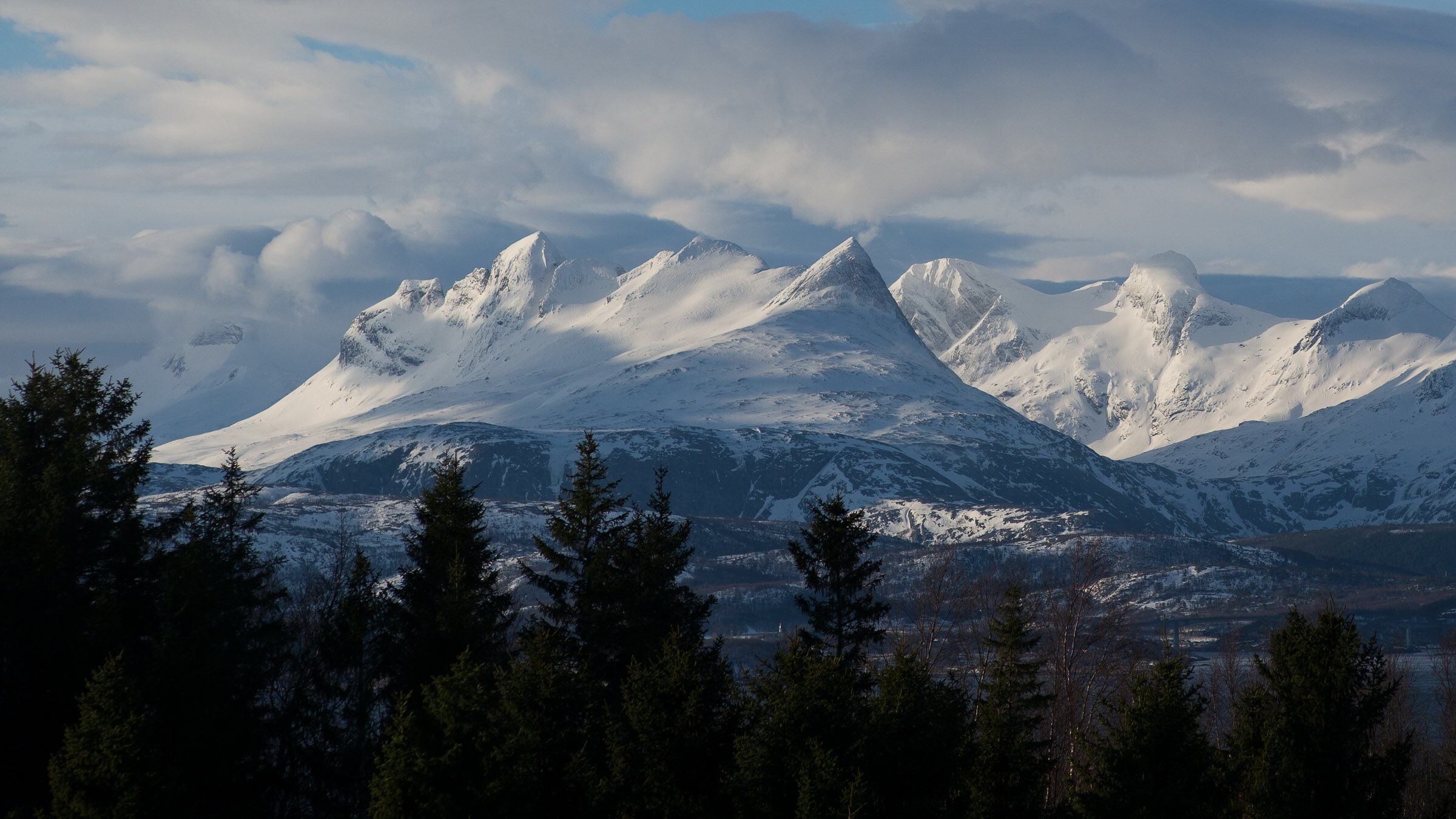 Fint bilde med linjer som leder inn mot toppen på fjellet.