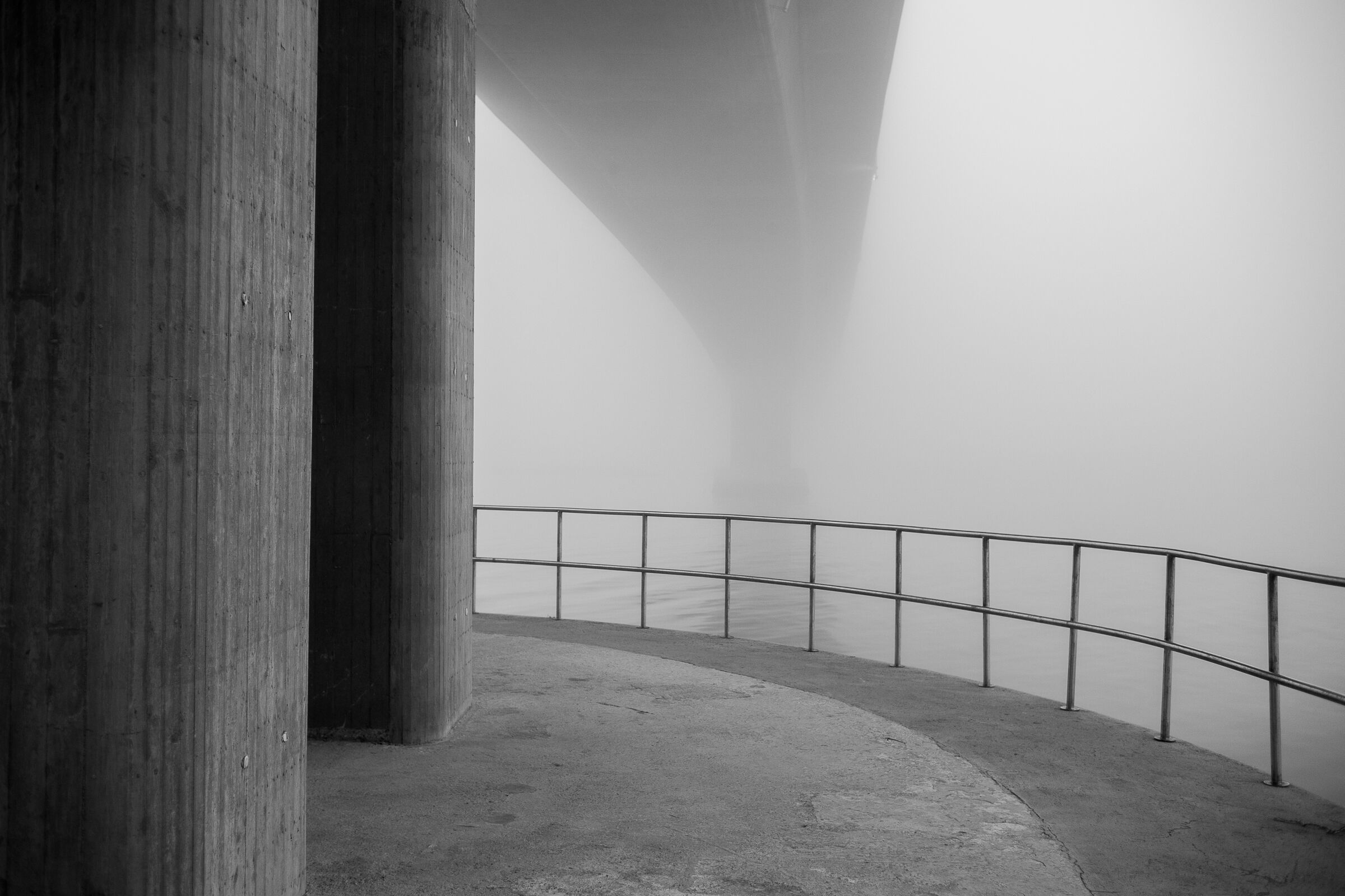 Veldig flotte og gjentagende linjer, med tåken som myker opp bildet. Det gjør seg med både buede og rette linjer. Her er alle grånyansene flott representert. Stemningsfullt bilde!