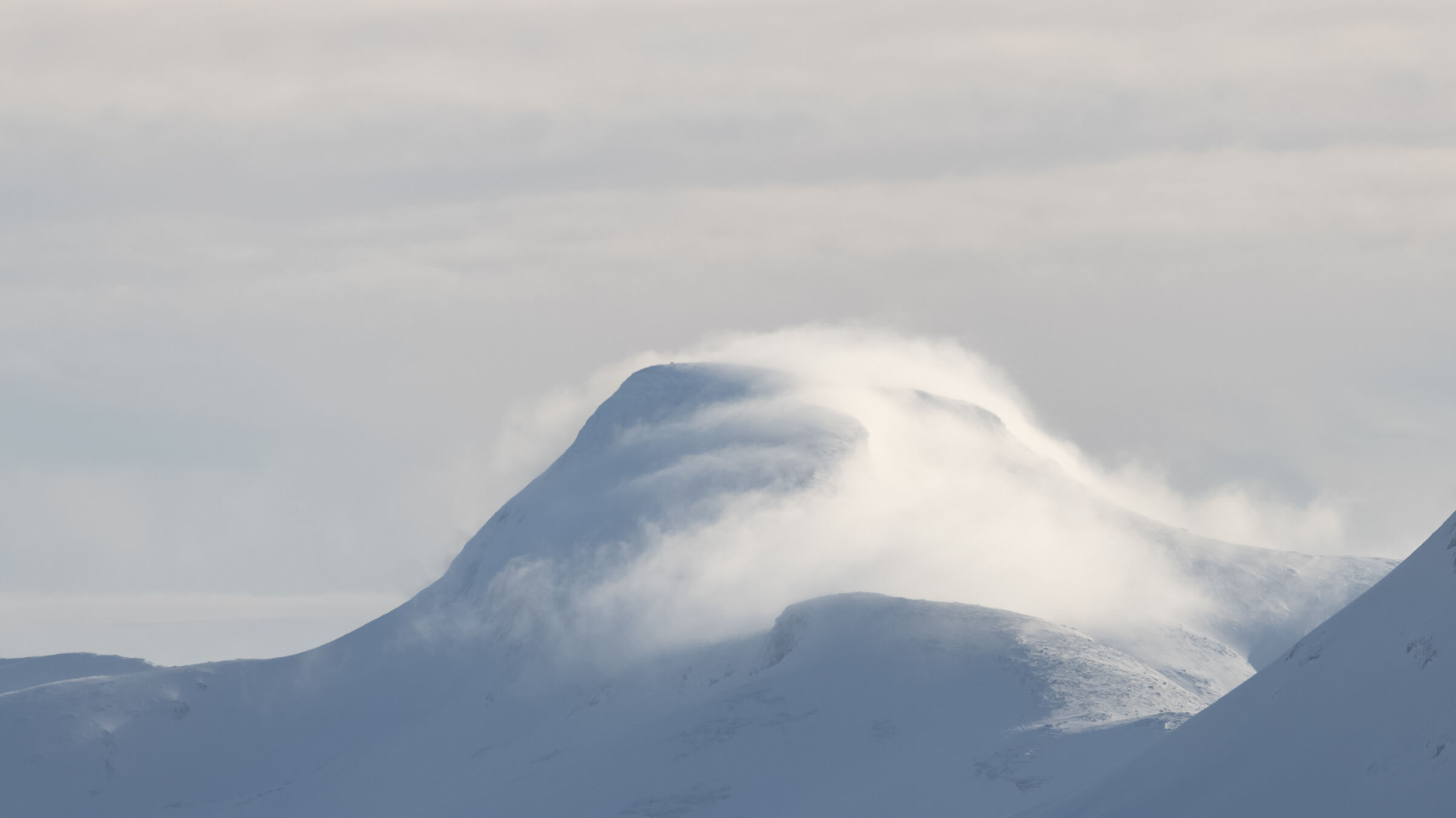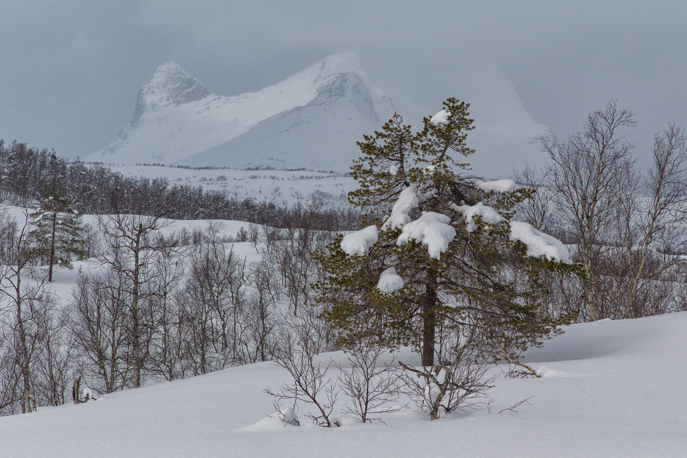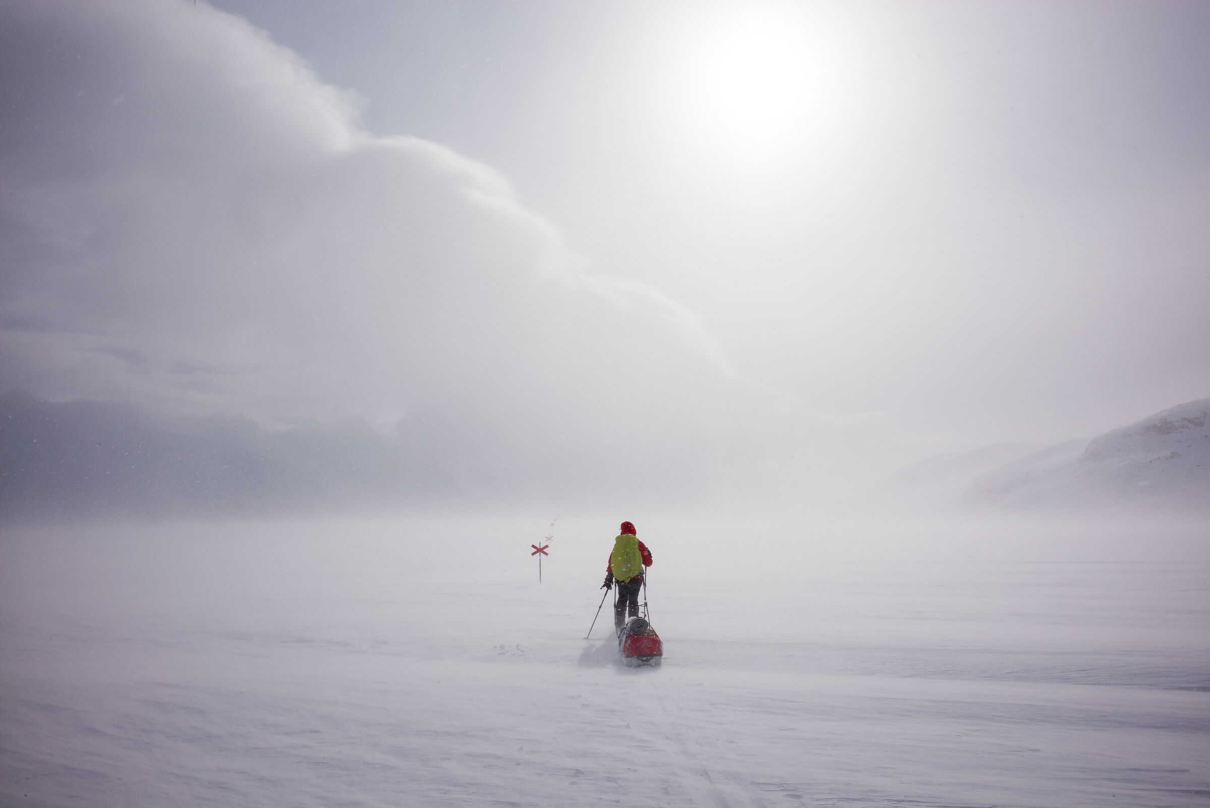 Lite menneske i storslagent landskap. Bildet får frem spenningen i naturen, hva er der fremme? En ny topp eller et langstrakt dalføre. Uttrykket er minimalistisk i sin form, og det er nok tegning og tekstur i det hvite til å forsvare et bredt synsfelt. Diagonal i både snø og skyer, og antydning til skispor - her klaffer alt! Klar vinner!