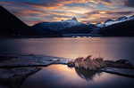 Blikkstille utsyn mot fjell |