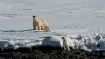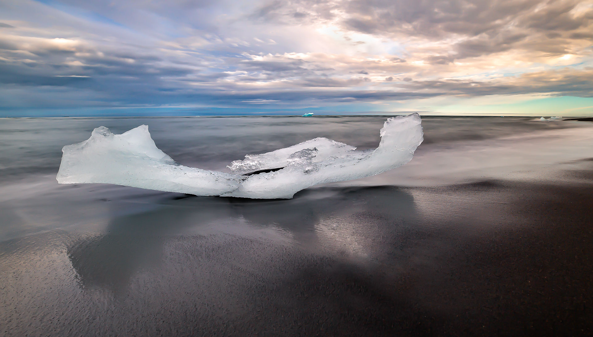 Ice on black beach |